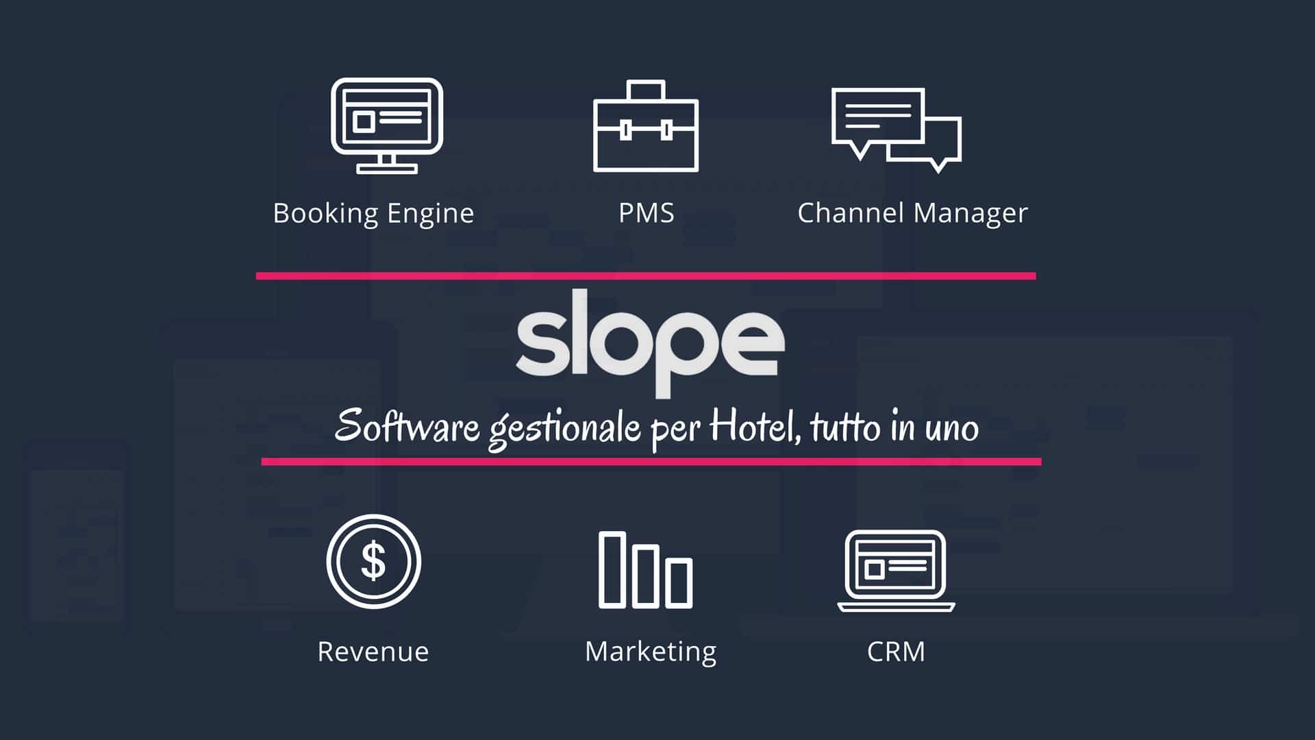 Slope offre una suite di soluzioni software perfettamente integrate fra loro come il booking engine, il channel manager o il PMS. Slope è interamente cloud-based: questo ti permette di amministrare la tua struttura da qualsiasi dispositivo fisso o mobile ovunque tu sia.