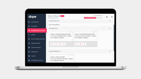 oppure - Slope permette di generare e scaricare la fattura elettronica in formato XML, lasciando poi all’albergatore la possibilità di inviarla e salvarla a norma di legge per 10 anni, tramite un servizio terzo a scelta dell’albergatore stesso.