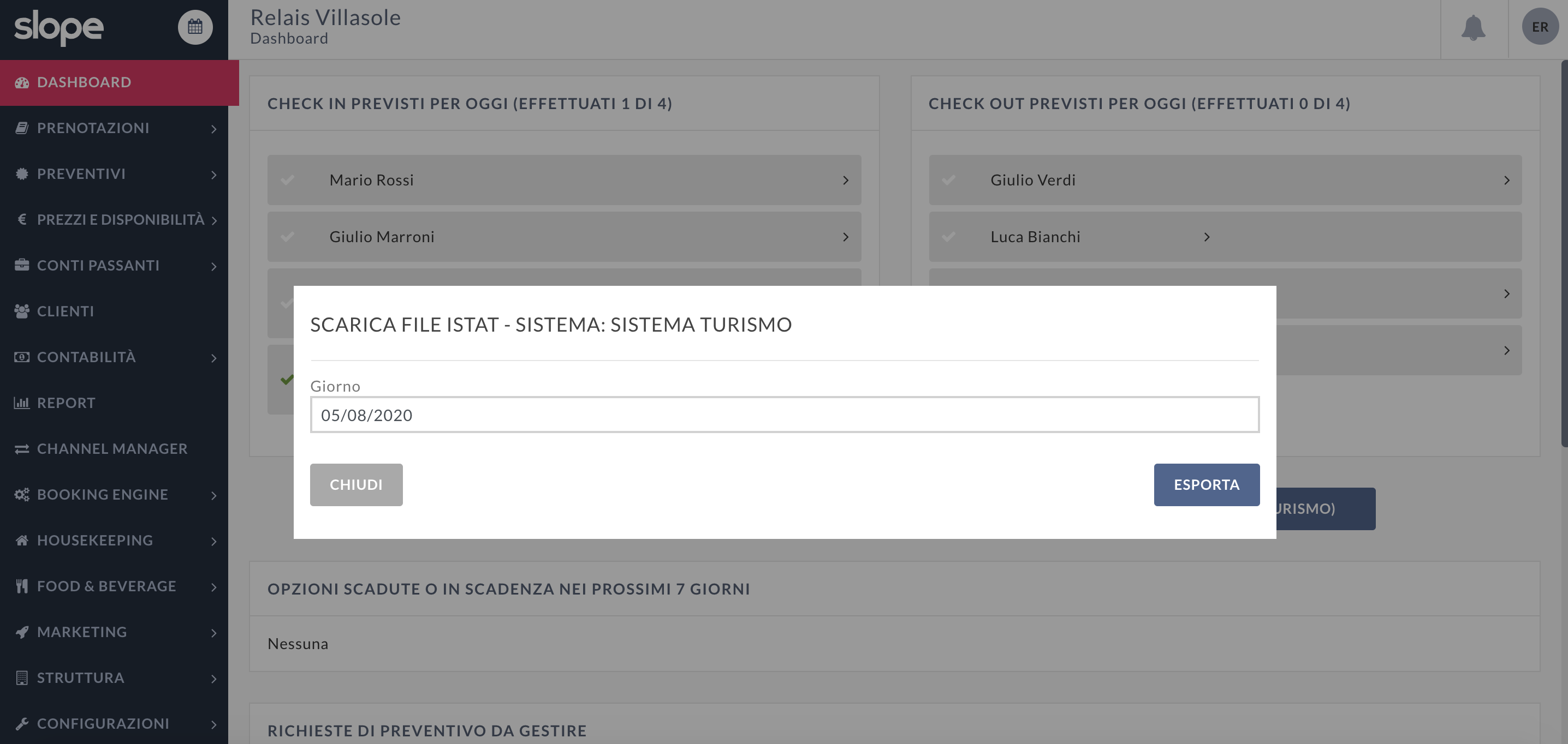 La sincronizzazione diretta dei dati ISTAT, quindi senza passare attraverso la compilazione manuale di un file, è solamente una delle tante funzionalità presenti nel PMS del gestionale Slope, come ad esempio la segnalazione della schedina alloggiati alla Polizia di Stato.