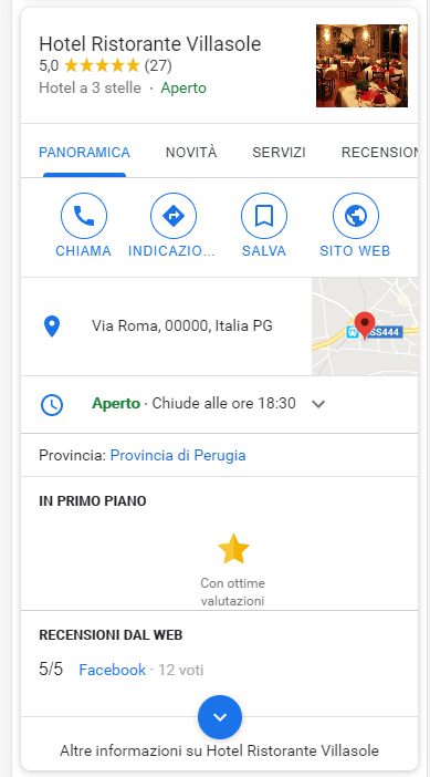 Questo è proprio il prodotto finale dell’attività di My Business, overo mettere in vetrina agli utenti che ricercano la nostra attività le informazioni più preziose ed utili.