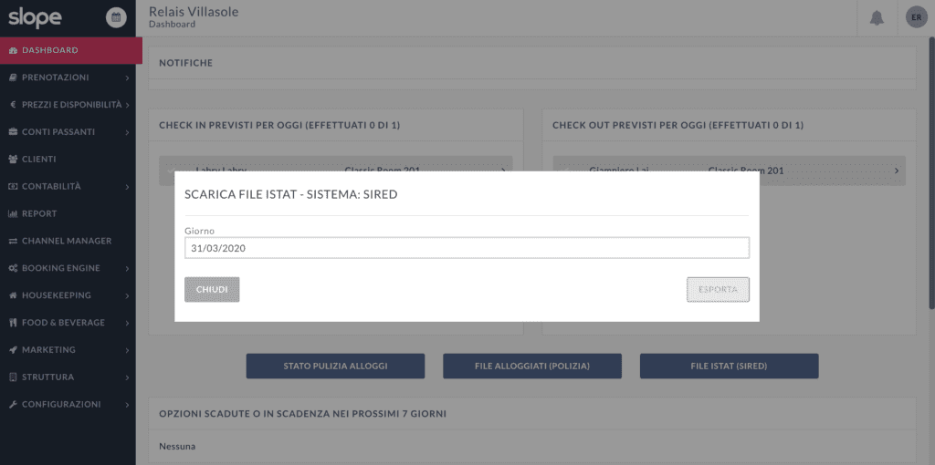 La sincronizzazione diretta dei dati ISTAT, quindi senza passare attraverso la compilazione manuale di un file, è solamente una delle tante funzionalità presenti nel PMS del gestionale Slope, come ad esempio la segnalazione della schedina alloggiati alla Polizia di Stato.