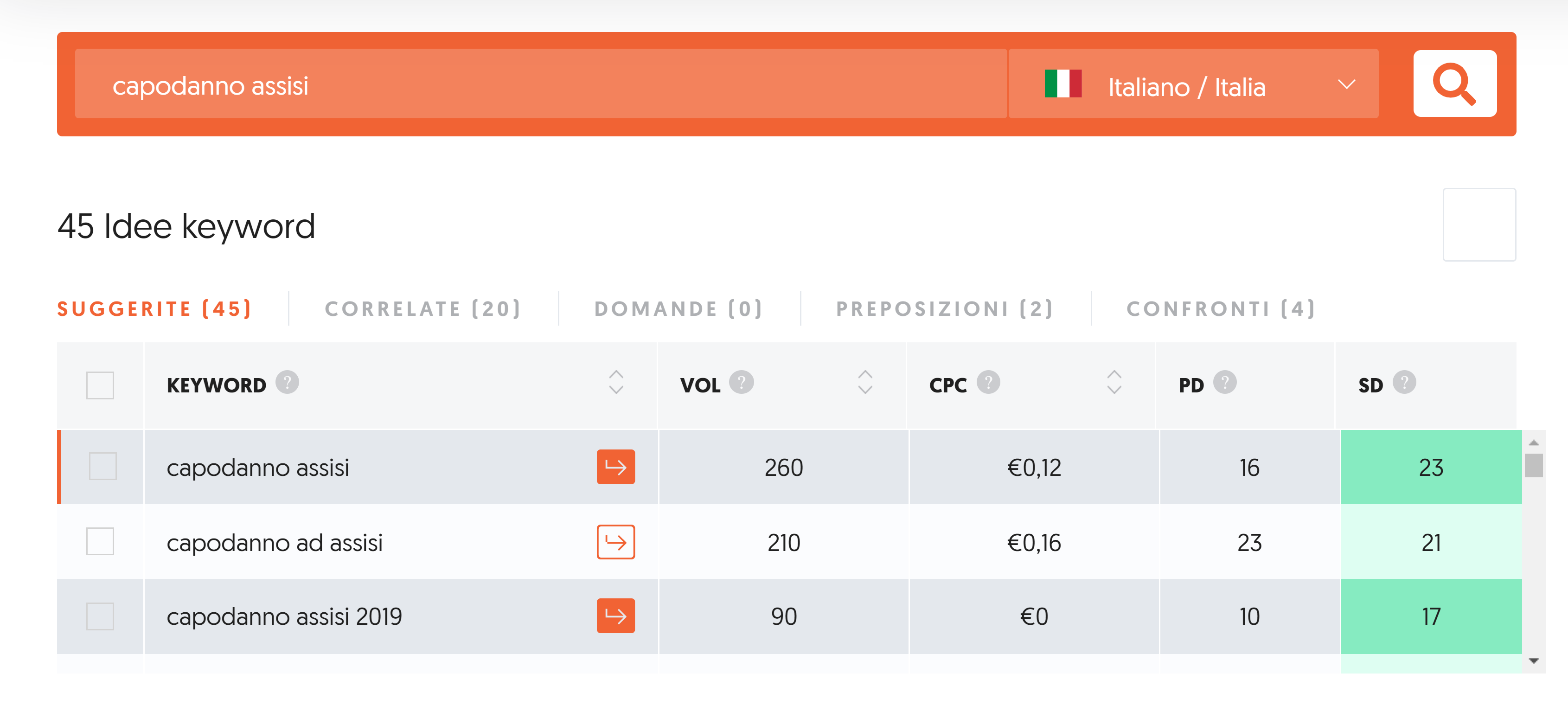 Proprio nel contesto fatto nel nostro esempio una ricerca molto frequente e con un discreto volume di ricerca potrebbe essere “Capodanno Assisi” e decidiamo così di utilizzarla come argomento del nostro articolo.